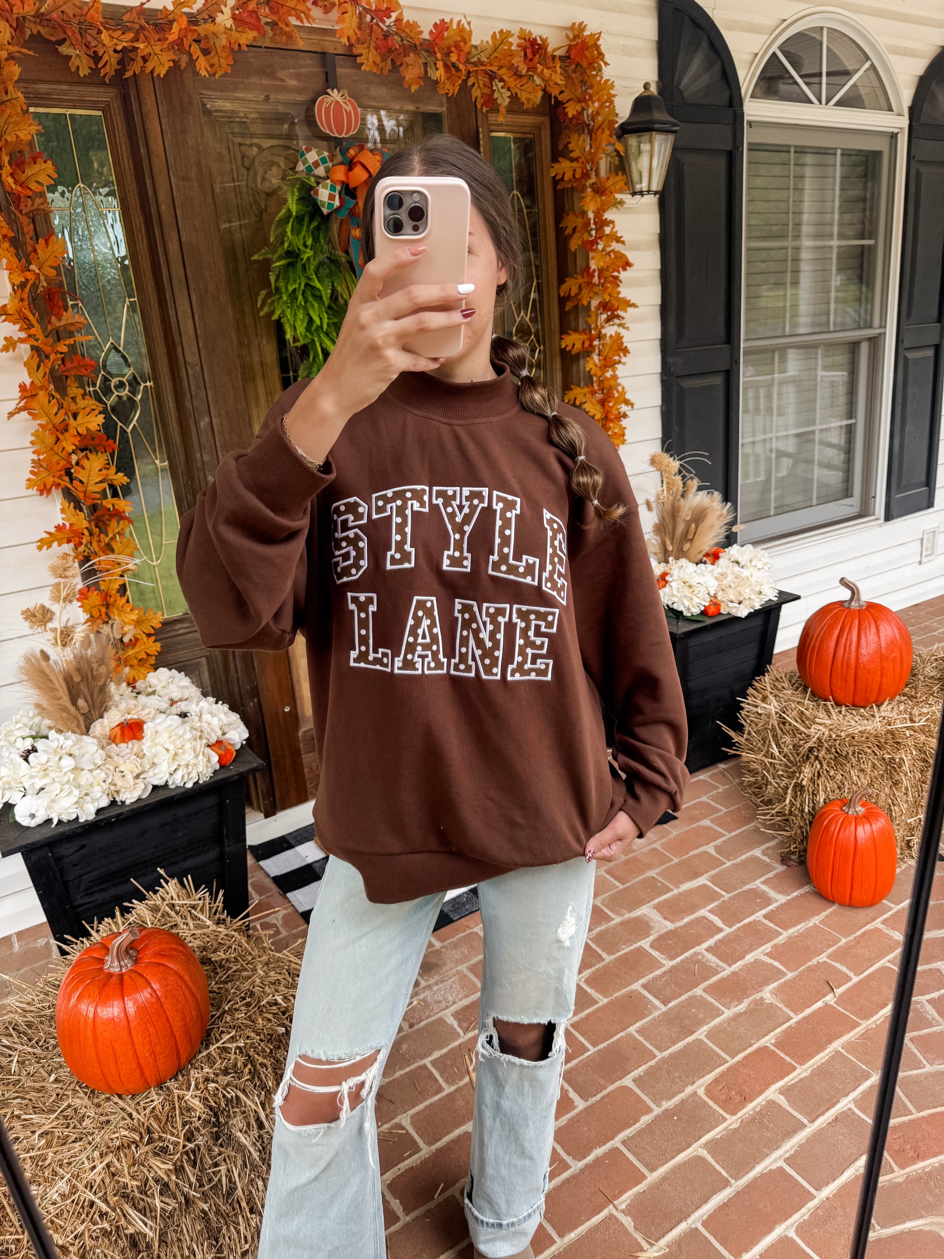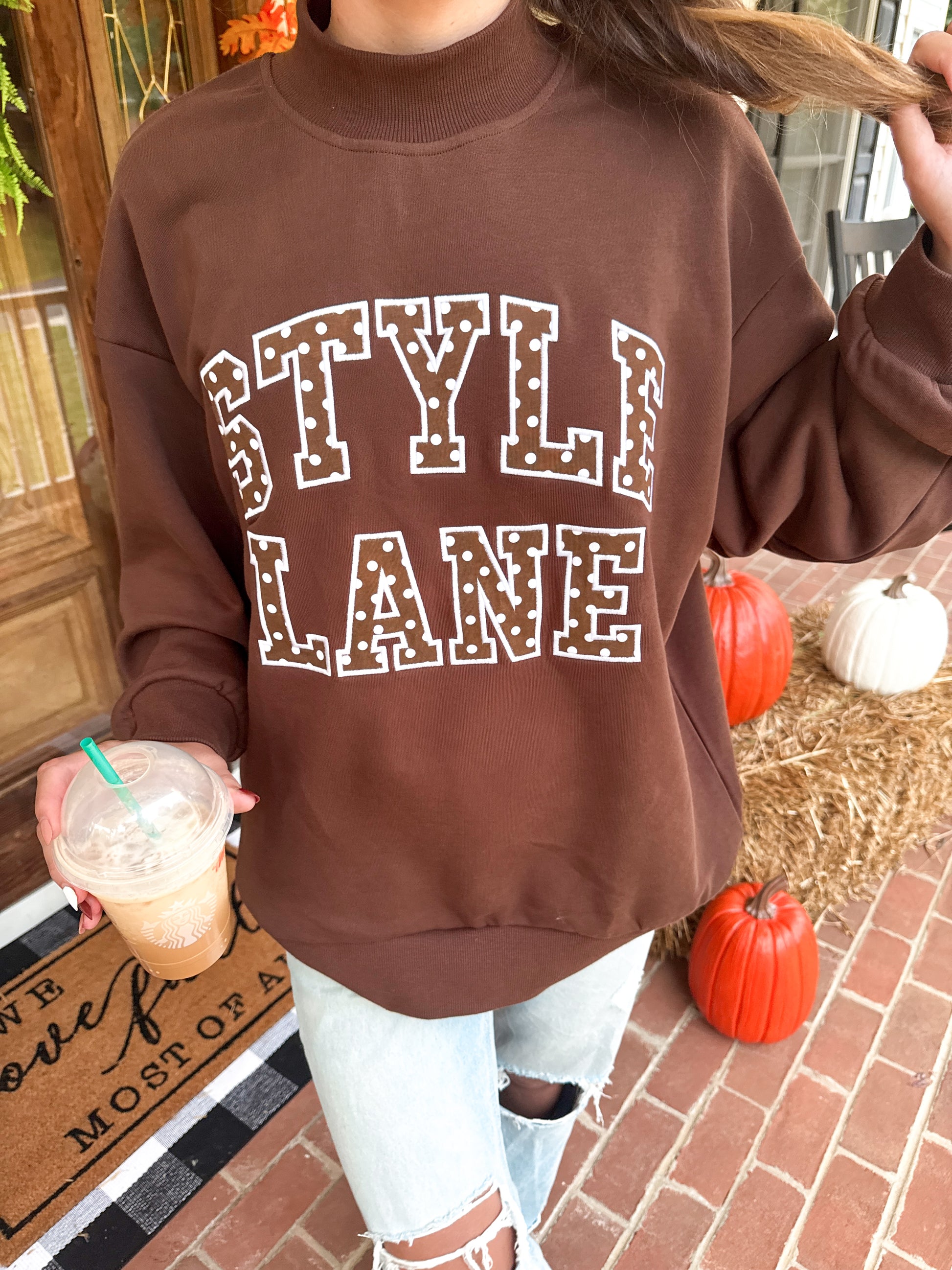 Our Style Lane mockneck is seriously a dream!! It’s a Style Lane exclusive design with custom appliqué embroidery and the cutest brown polka-dot fabric inside the letters 🤎 Made from 100% cotton 330GSM French Terry, so it’s that perfect thick + comfy feel. Designed with an oversized fit for the cozy, effortless look we all love — basically your new go-to for everyday style!! Size guide in photos!
