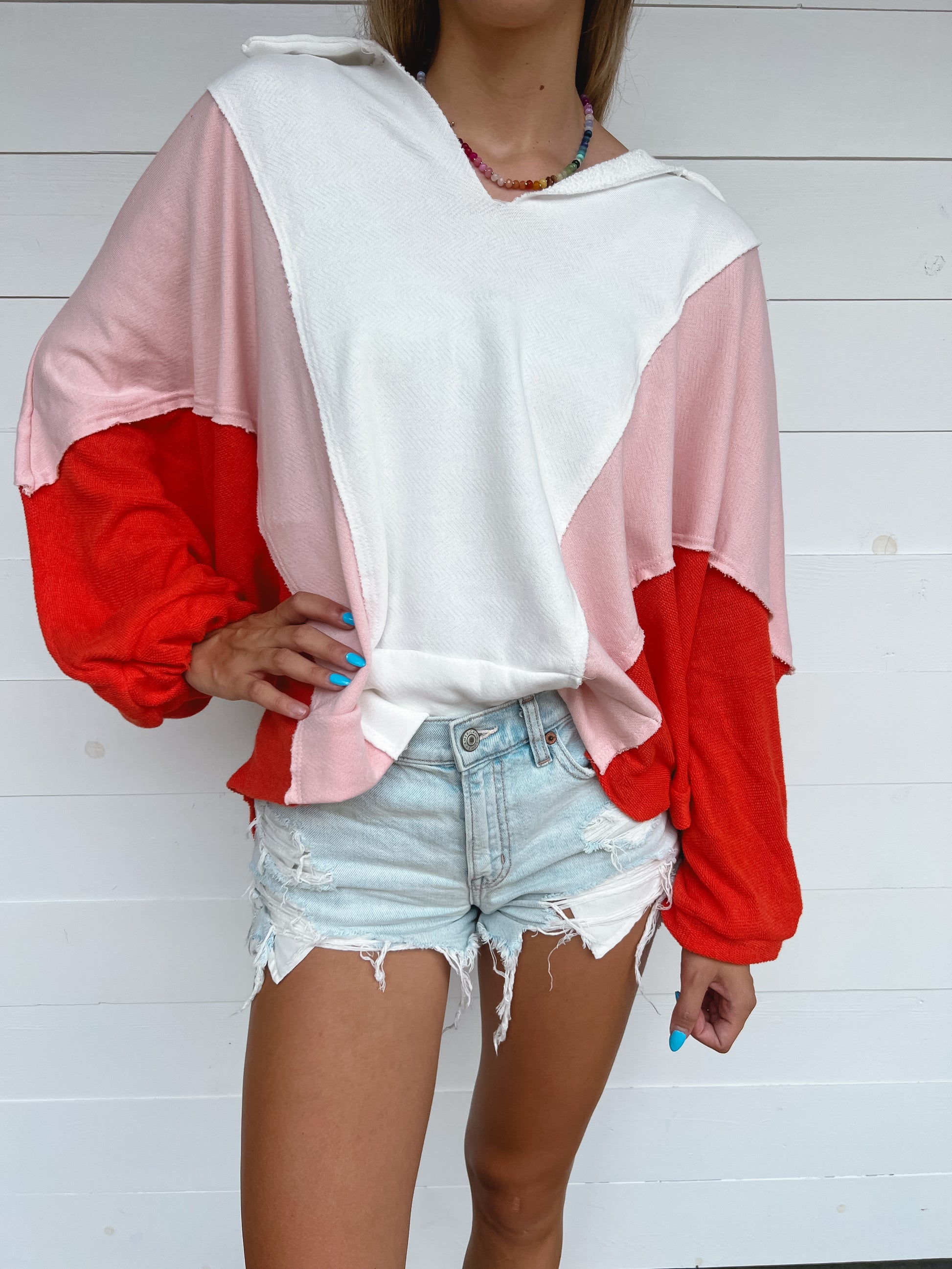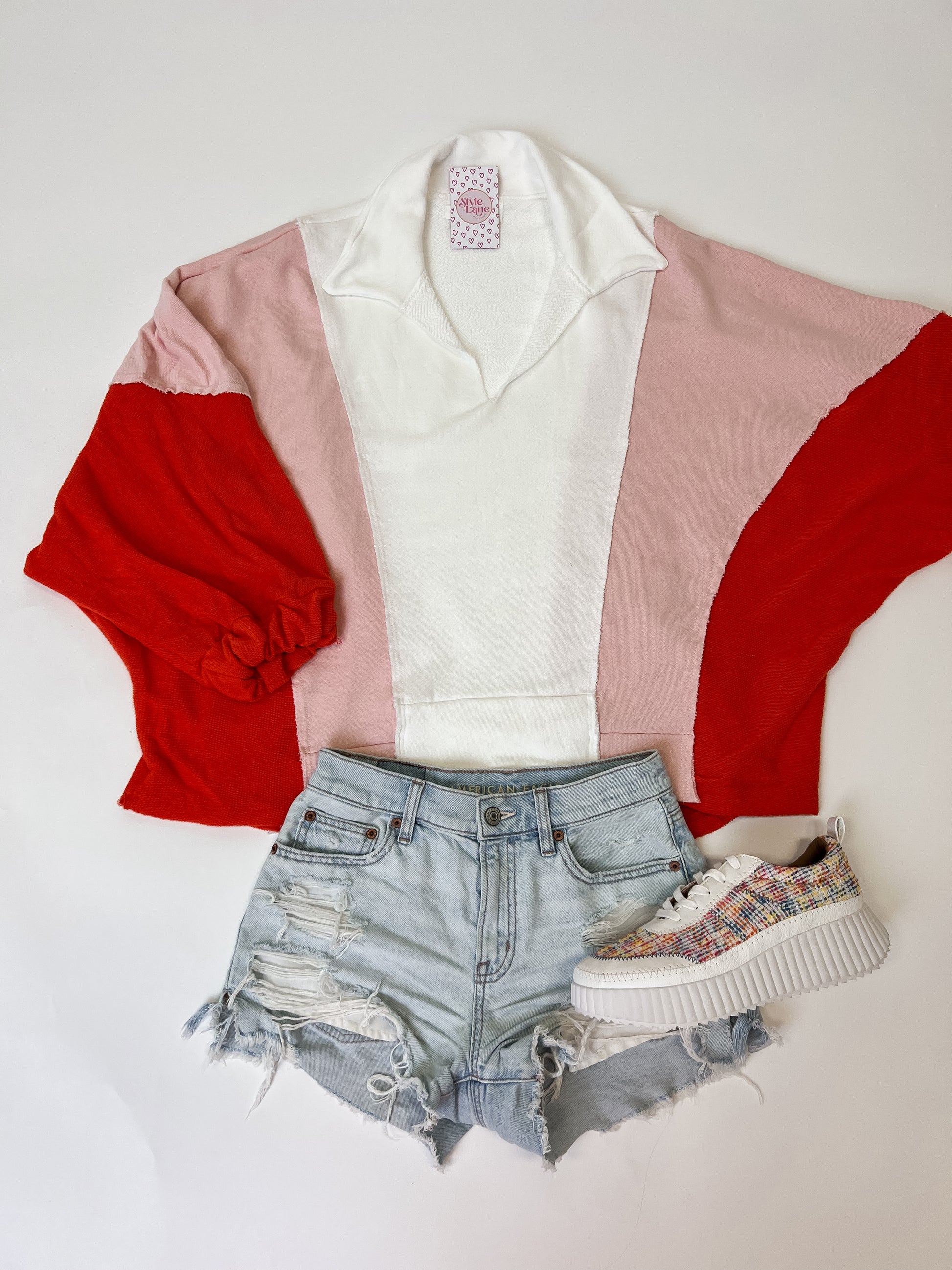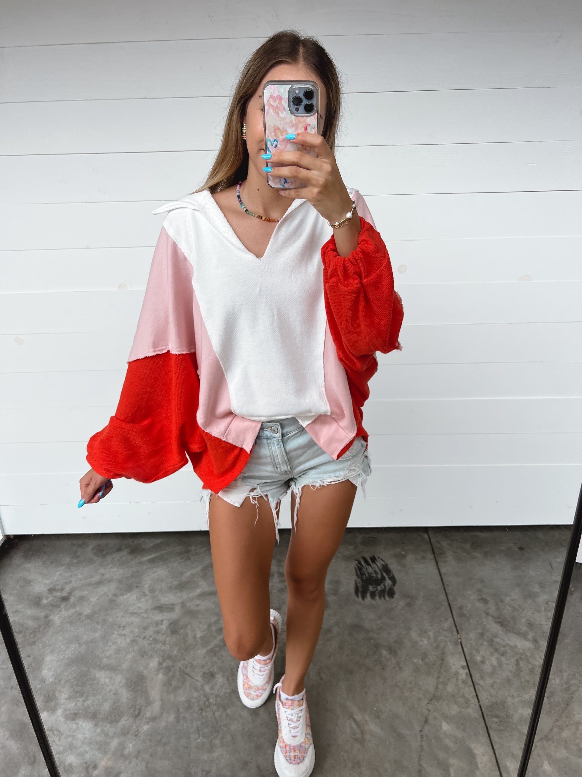 Stay breezy and stylish with our Sunset Skies Top. Featuring an oversized fit, contrasting colors, and a classic collared v-neck, this top is perfect for any fun and detailed outfit. Made in Mexico.